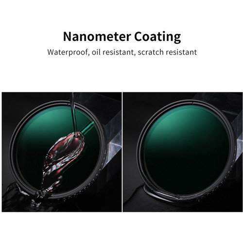 Профессиональный ND светофильтр с переменной плотностью в широком диапазоне от 8 до 2000, не влияющего на цвет и резкость изображения. Модель от K&F concept имеет олеофобное покрытие, благодаря чему на поверхности не остаются следы от пальцев, а капли дождя сразу же стекают |
