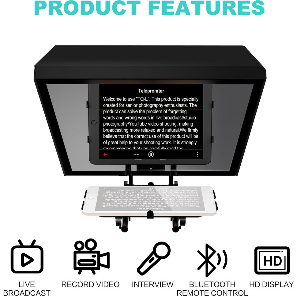 Универсальность и удобство использованияТелесуфлер GVM Teleprompter TQ-L — это идеальное решение для профессиональной съемки как в студии, так и на выезде. Он совместим с планшетами и смартфонами на iOS и Android, что позволяет использовать их в качестве монитора для отображения текста. Приложение GVM дают возможность контролировать прокрутку текста, его скорость и старт/стоп с помощью Bluetooth пульта. В комплекте добавлено крепление для планшетов, включая iPad Pro 12.9", что делает этот телесуфлер универсальным инструментом для любых задач |