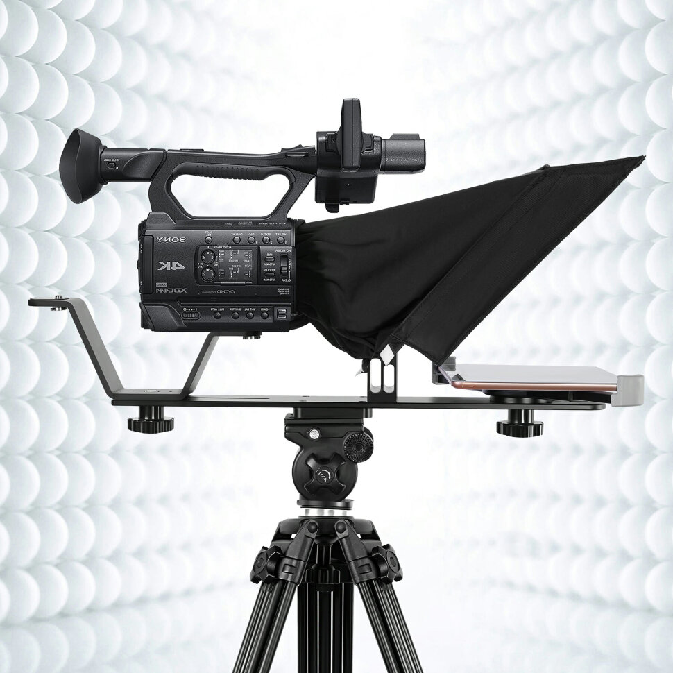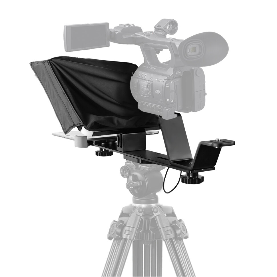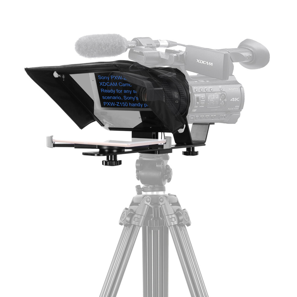 Конструкция телесуфлера TQ-M выполнена из прочного алюминиевого сплава, что обеспечивает долговечность и надежность в использовании. Устройство совместимо с различными типами камер, включая зеркальные и цифровые фотоаппараты, а также видеорегистраторы. С помощью стандартных резьбовых отверстий 1/4" и 3/8" его можно легко установить на штатив. А зеркальный экран с бесцветным светоделителем гарантирует четкое отображение текста, позволяя вам читать его, глядя прямо в камеру |
