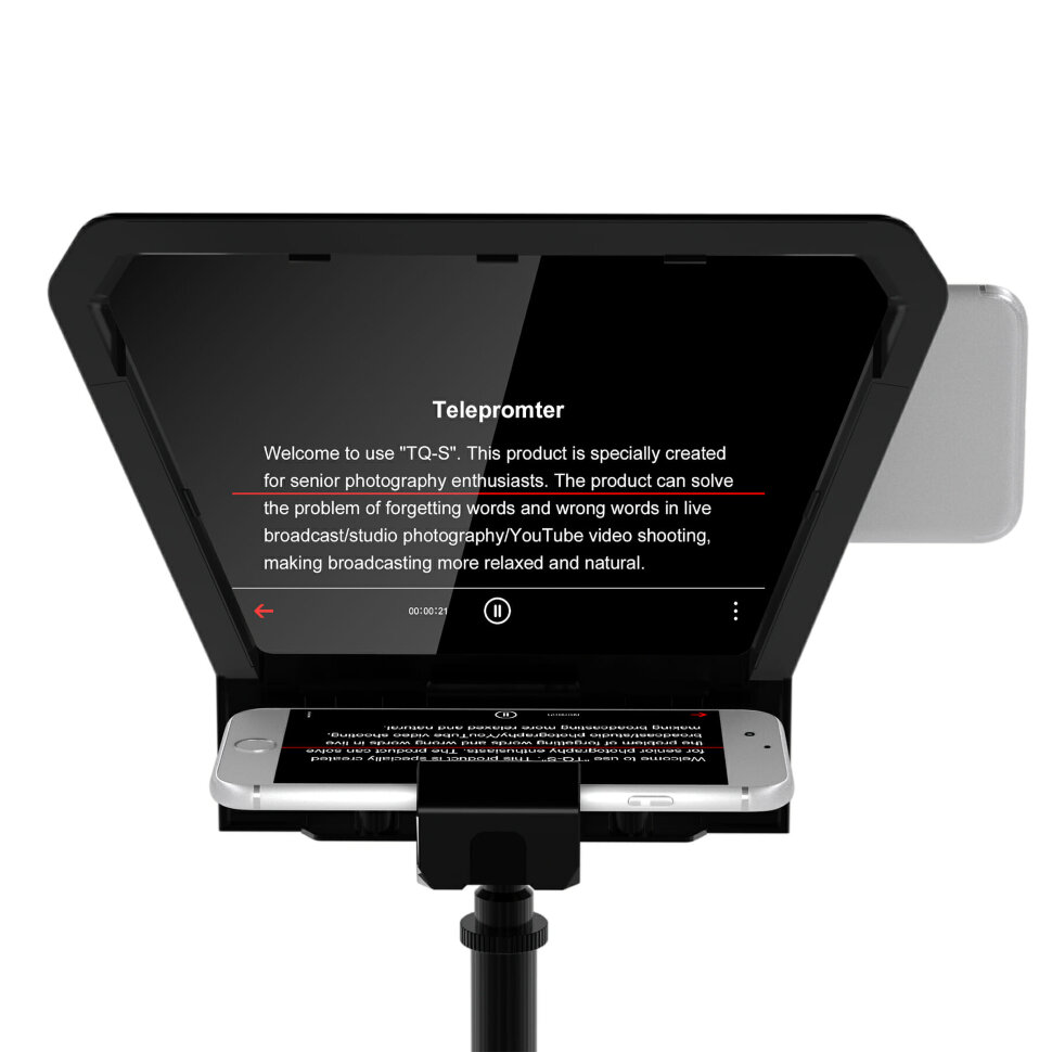 Телесуфлер GVM TQ-S управляется через удобное приложение по Bluetooth, что позволяет легко настраивать текст и скорость прокрутки. Основание и кронштейн, изготовленные из алюминиевого сплава, обеспечивают легкость и прочность конструкции, а простой винт ручной закрутки позволяет быстро и надежно монтировать оборудование |