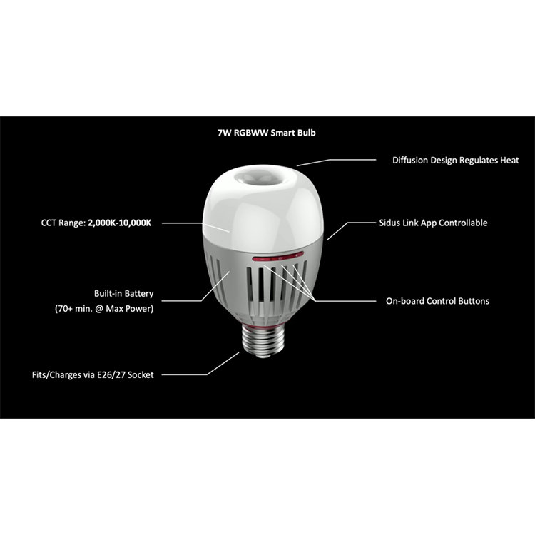 Автономная работаЛампа может функционировать как от цоколя E26/27, так и от встроенного аккумулятора. Батарея обеспечивает 70 минут работы при полной мощности и 20 часов при минимальной. Лучший вариант для выездной фотосъемки. Вы сможете управлять настройкой лампы через фирменное приложение через персональный смартфон |