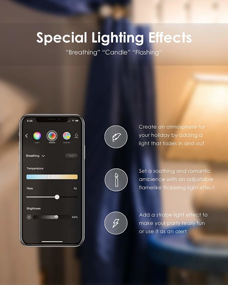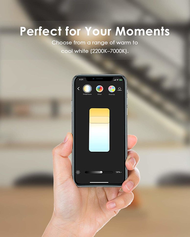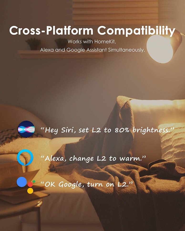 | Интеллектуальная светодиодная лампочка. С ее помощью вы сможете настроить освещение по своему усмотрению в зависимости от настроения. Преимуществом представленной модели является широкий диапазон цветовой температуры 2200-7000К. Функционирует с Apple HomeKit, Alexa и Google Assistant |