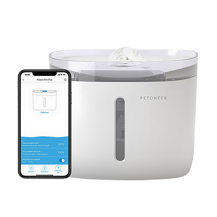 Управление с помощью приложенияУстановив специализированное приложение Petoneer на свой смартфон, вы сможете удаленно запускать поилку или выключать ее, а также настроить режим работы устройства и следить за качеством фильтрации. Приложение подходит для iOS и Android. Подключение производится с помощью Wi-Fi |