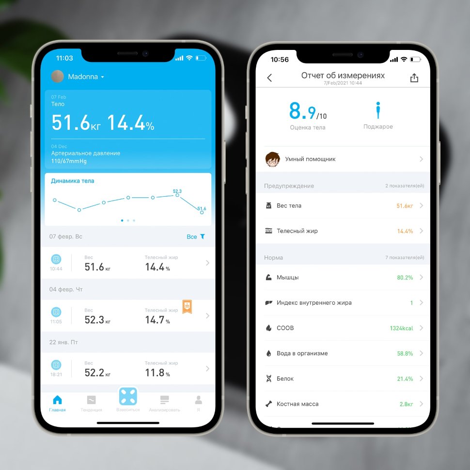 Умное приложениеРегулярно собирая информацию о вашем теле, весы могут показать календарь изменений и дать советы. Также, устройство способно различать людей, использующих его и отправлять данные в определенный профиль. Конечно же эта особенность работает при условии что, люди обладают различным весом для того, чтобы система смогла их отличить. Приложение доступно для iOs и Android |