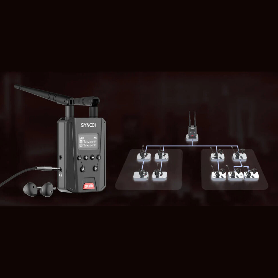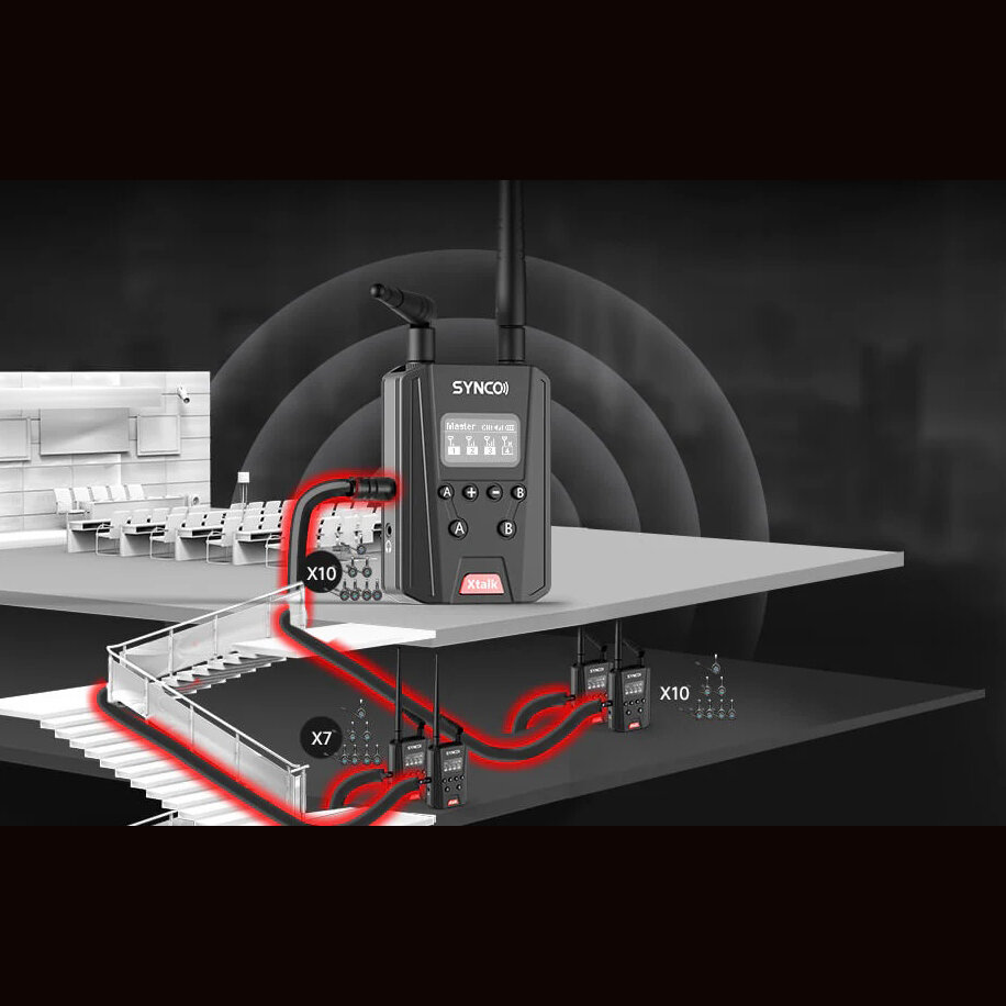Неограниченные подключения для масштабных командSynco Xtalk Link обеспечивает значительное расширение возможностей гарнитур серии Xtalk выполняя роль беспроводного хаба. С использованием усилителя количество подключённых устройств становится безграничным, что идеально подходит для крупных мероприятий и масштабных съёмок. Например, один модуль Signal Boost позволяет объединить два набора Xtalk X10 для обеспечения связи между 21 пользователем, а добавление второго увеличивает количество участников до 29. Эта функция делает Synco Xtalk Link незаменимым для спортивных соревнований, концертов, выставок и прямых трансляций, где необходима постоянная связь большого количества членов команды |