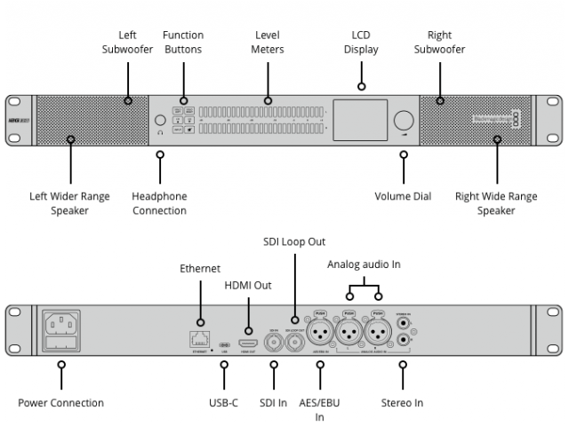Высококачественный контроллер аналогового звука с AES / EBU и 12G-SDI интерфейсамиОбеспечивает фантастическое качество звука при невероятно маленьком размере одной стойки! С двойным дизайном вуфера в сочетании с дополнительными широкополосными динамиками, поддерживаемыми сверхмощным усилителем класса D. Blackmagic Audio Monitor 12G был разработан как решение для аудио- и видеомониторинга, поэтому вы получаете продвинутый вход 12G-SDI с входом до 60p, а также сбалансированный аналоговый звук XLR, сбалансированный цифровой звук AES / EBU и аудиовходы HiFi на уровне потребителя. Blackmagic Audio Monitor 12G имеет элегантный дизайн с большими яркими многоцветными аудиометрами VU, PPM или Loudness и встроенным ЖК-дисплеем для мониторинга видеоисточников. Вы даже получаете выход HDMI 4K, так что вы можете подключить телевизор для видеонаблюдения на большом экране ваших источников SDI! Blackmagic Audio Monitor 12G обеспечивает точный контроль аудиодорожки и при этом отличается компактными размерами. Занимая всего одно место в стойке, это решение имеет два сабвуфера, динамики со сверхшироким диапазоном частот и мощный усилитель класса D. Оно оснащено современным интерфейсом 12G-SDI, симметричными XLR-разъемами для аналогового и цифрового AES/EBU-звука, а также входами для бытовой техники класса Hi-Fi. Для мониторинга сигнала используются яркие трехцветные индикаторы и встроенный ЖК-дисплей на передней панели, а выход HDMI 2.0 позволяет подключать большие Ultra HD‑экраны. |