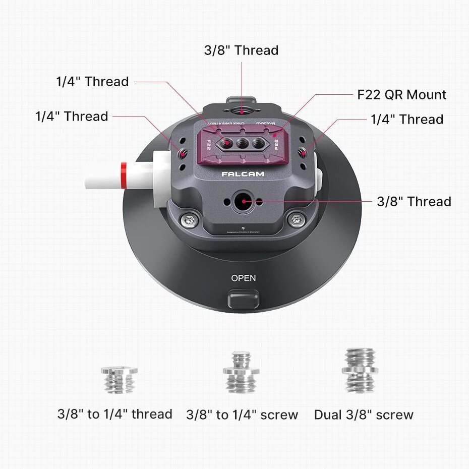 Многофункциональное крепление с вакуумной присоской и множеством отверстий под различные крепления. С его помощью вы сможете устанвоить оснащение для съёмки на стекло или любую другую ровную поверхность |
