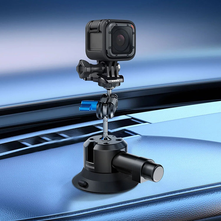 Универсальная вакуумная присоска для установки лёгкой камеры или смартфона на стекло или гладкую поверхность. Способна выдержать до 20 кг горизонтальной нагрузки и до 12 кг вертикальной, а максимальная полезная нагрузка конструкции 1.5 кг |