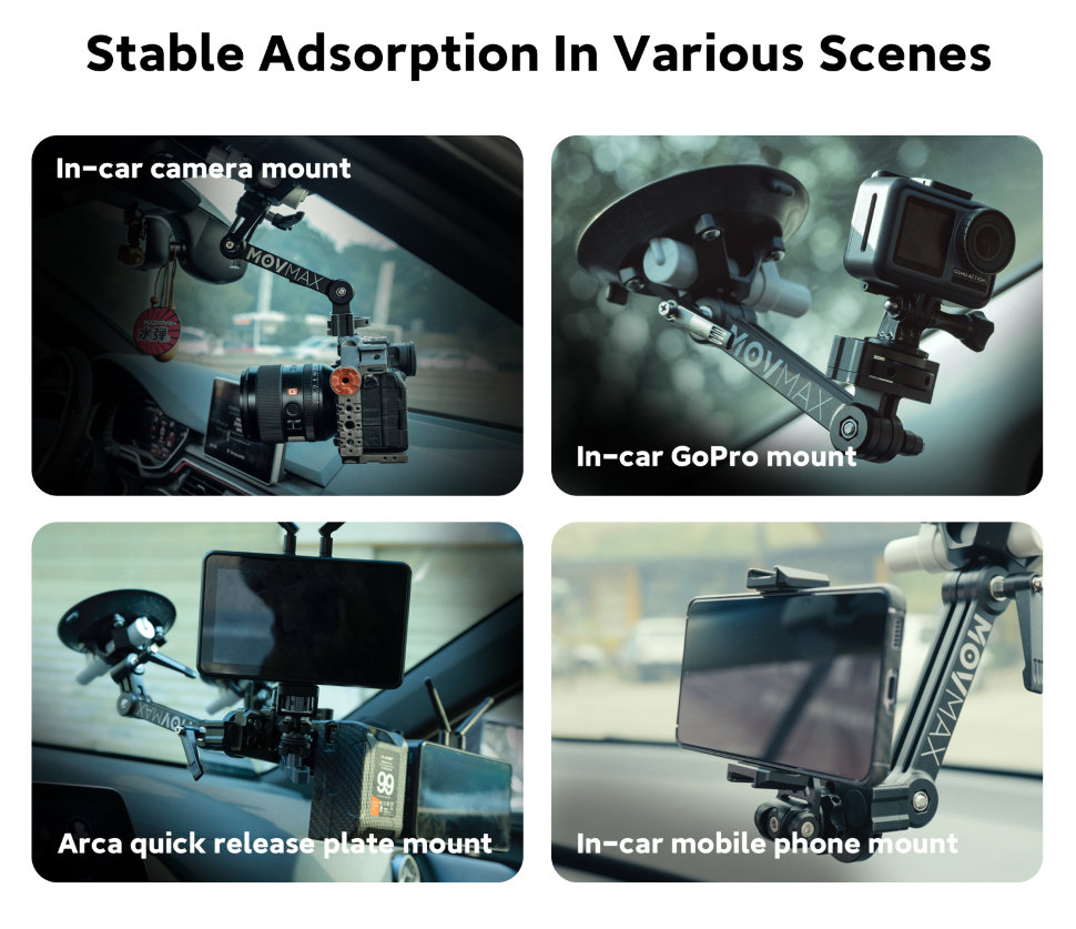 Для установки оборудования предусмотрен винт 1/4", резиновая антискользящая накладка обеспечит прочность фиксации и отсутствие люфта при работе с камерой. Присоска с высокой адгезией способна надежно фиксироваться на любой гладкой поверхности |