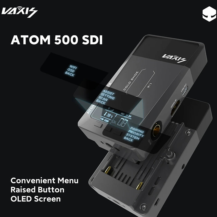 Универсальный и компактныйСтаршая версия ATOM 500 имеет расширенный функционал. И передатчик и приёмник имеют HDMI и SDI порты с передачей видео в формате до 1080p/60 Гц. В корпус уже встроена антенна для большей компактности, а яркий дисплей позволяет контролировать рабочие параметры. Предусмотрена активная система охлаждения, что включается автоматически при нагревании |