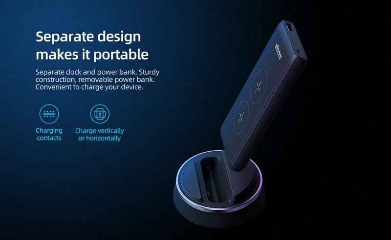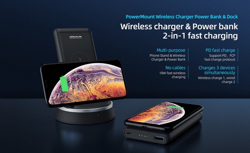 3 в 1Nillkin Power Mount - это устройство сочетающее в себе как док станцию с беспроводной зарядкой, так и внешний аккумулятор, способный заряжать несколько устройств одновременно. Специальная база выполняет роль зарядного устройства и подставки одновременно. Вам необходимо лишь установить туда аккумулятор и вы сможете пополнять энергозапас гаджета одновременно просматривая ролики или общаясь без необходимости подключать провода. К тому же, в конструкции предусмотрено сразу две катушки, что позволяет подзаряжать смартфон как в вертикальном, так и в горизонтальном положении |