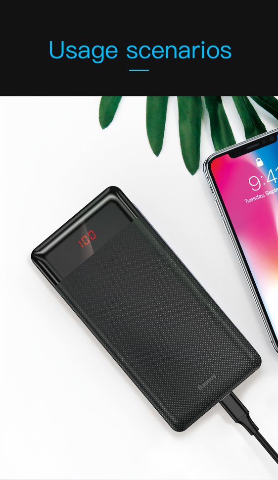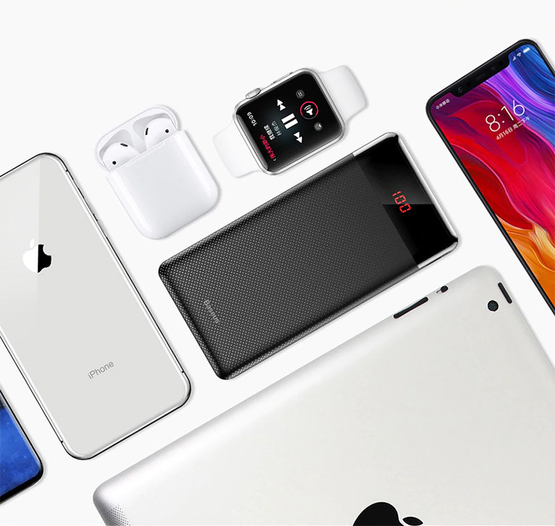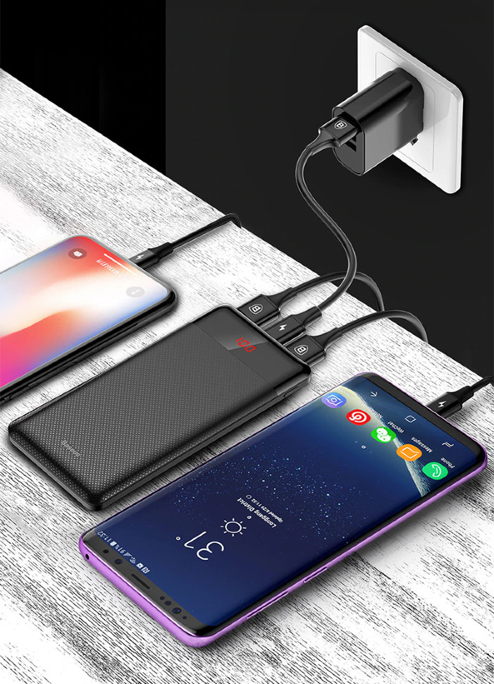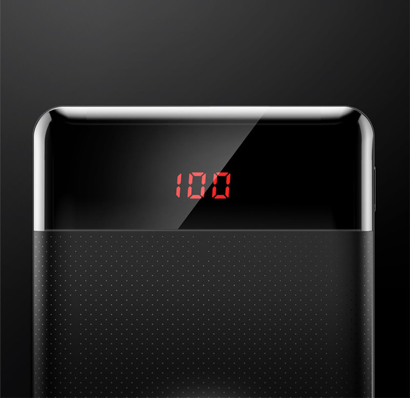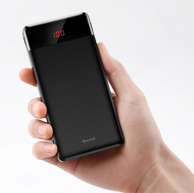 Внешний аккумулятор от Baseus позволяет заряжать сразу два устройства, и покажет сколько энергии в запасе у него осталось |