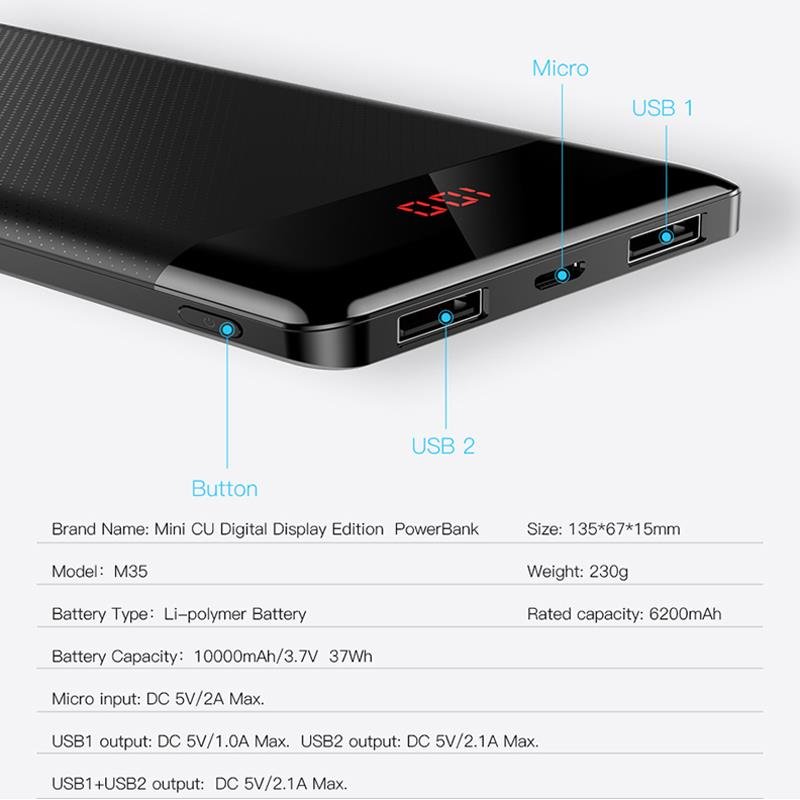 Внешний аккумулятор с дисплеем Baseus Mini Cu 10000mAh Чёрный