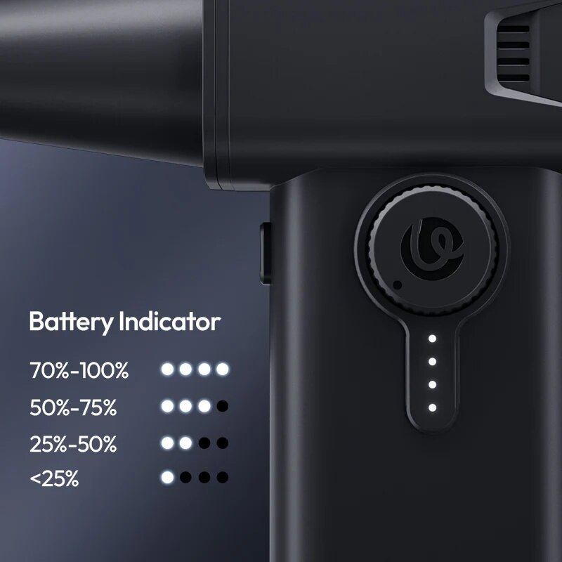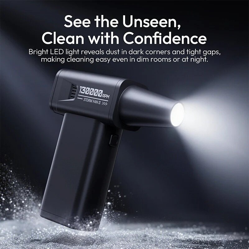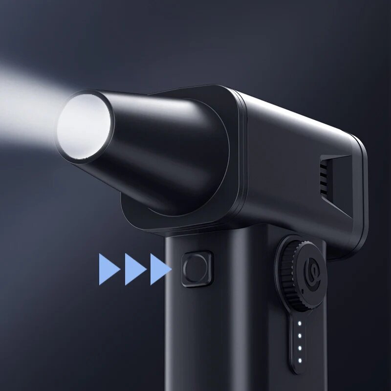 Эргономика и управлениеКорпус весом 300 грамм отличается компактностью и адаптирован для работы одной рукой. Трехрежимная система управления включает удержание кнопки для импульсной подачи воздуха, двойное нажатие для непрерывного режима и тройное нажатие для активации подсветки. Встроенный светодиод освещает зоны очистки в условиях слабой видимости, а универсальный порт Type-C обеспечивает полную зарядку за 3 часа |