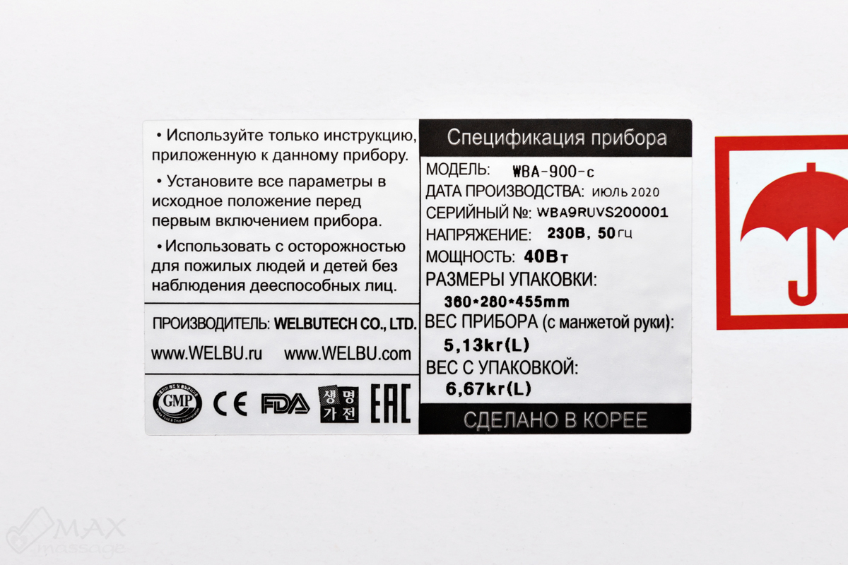 Сертификация EACКомпания WelbuTech – один из лидирующих производителей качественных массажных аппаратов для лимфодренажа и прессотерапии. Техника Велбутек очень популярна в Южной Корее и приобретает всё больше поклонников по всему миру. Массажные аппараты WelbuTech Seven Liner Zam, представленные в нашем интернет-магазине, имеют сертификаты соответствия и полностью безопасны в эксплуатации. Наличие у массажного аппарата сертификата означает, что прибор прошёл все необходимые процедуры оценки и соответствует требованиям технических регламентов. При покупке оборудования для массажа обязательно обращайте внимание на наличие сертификатов. Как правило, их нет у китайских приборов, а значит, вы не застрахованы от быстрой поломки устройства или даже получения травм и вреда для здоровья при эксплуатации. Советуем покупать массажёры с сертификатом: так вы можете быть уверены, что прибор прош WelbuTech Relaxe WBA-900 Аппарат для лимфодренажа, прессотерапии, массажа (стандартный комплект), размер XL