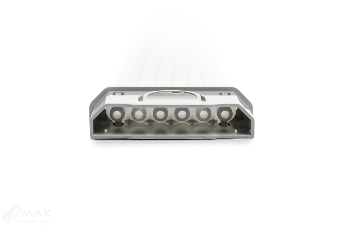- Комбинированный режим. В этом режиме воздух поступает в камеры в уникальной последовательности, имитируя ручное воздействие. Сначала производится массаж по две камеры: поочерёдно накачиваются первая и вторая, третья и четвёртая, пятая и шестая камеры. После начинается лимфодренаж по три камеры. Поначалу поочерёдно накачиваются первые три камеры, удерживая воздух в предыдущих. Далее камеры постепенно сдуваются: при накачке четвёртой камеры спускается первая, при накачке пятой сдувается вторая, а при надуве шестой камеры воздух выходит из третьей. Кроме того, во время лимфодренажа по три камеры предусмотрен эффект пульсации: последняя активная камера быстро накачивает и спускает воздух три раза, обеспечивая интенсивное воздействие на область. Режим подходит для снятия мышечного напряжения и общего расслабления.