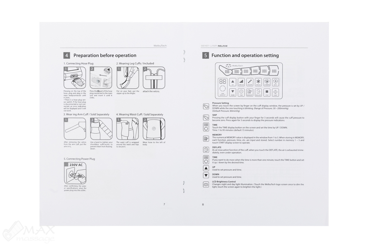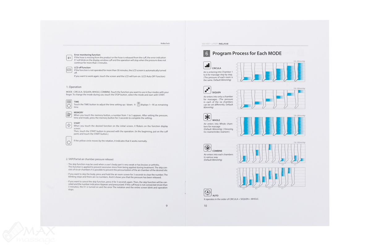 Режим «Массаж»Во время режима «Массаж» (Sequen) камеры последовательно накачиваются воздухом, одна за другой. Это не только отличный способ расслабиться, но и очень полезная процедура, которая способствует: