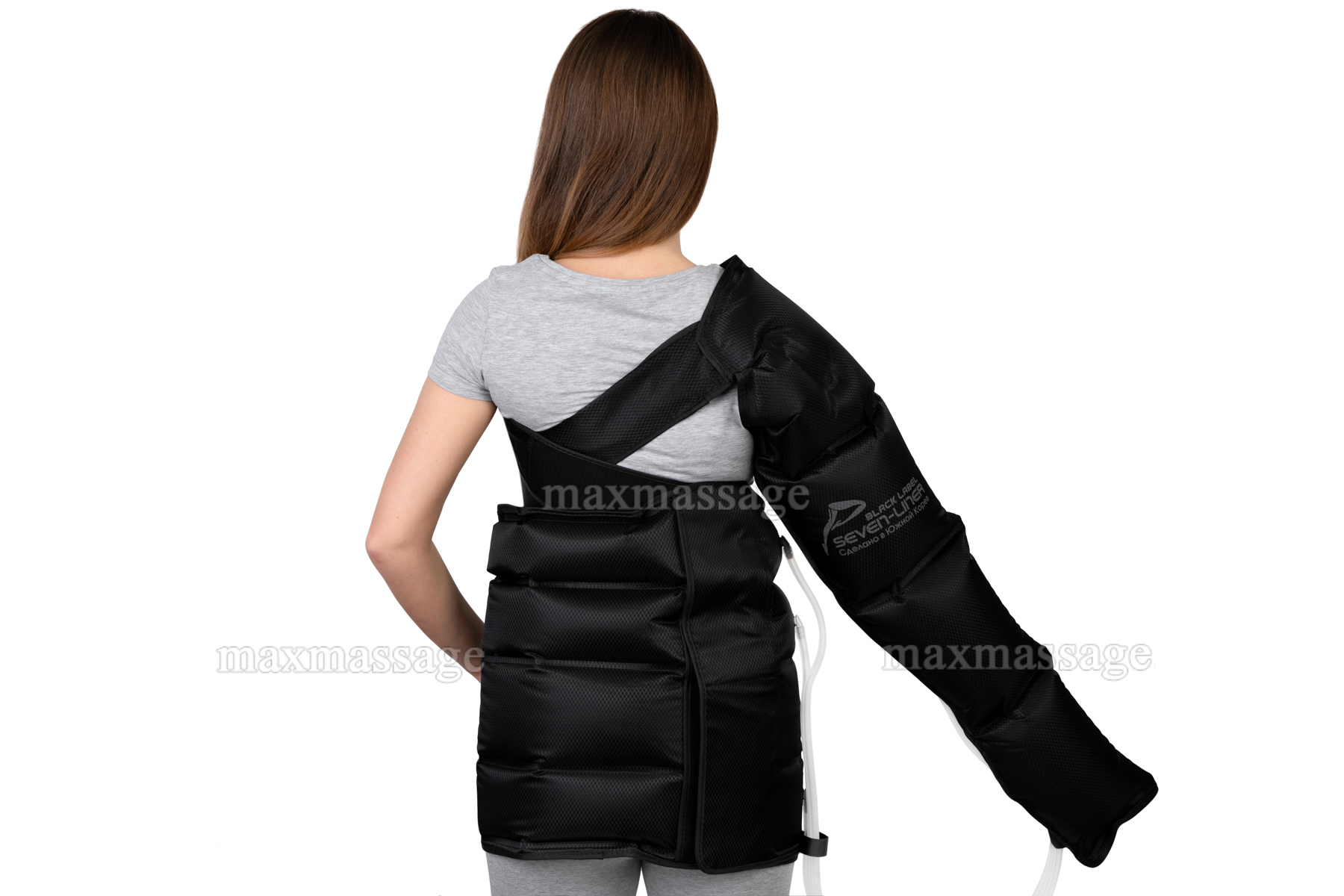 - Комплексный массаж с несколькими манжетами. В полный комплект входят разветвители, которые позволяют одновременно использовать ботфорты, рукав и пояс. Благодаря этому вы можете размять всё тело или насладиться процедурой совместно с другими людьми.