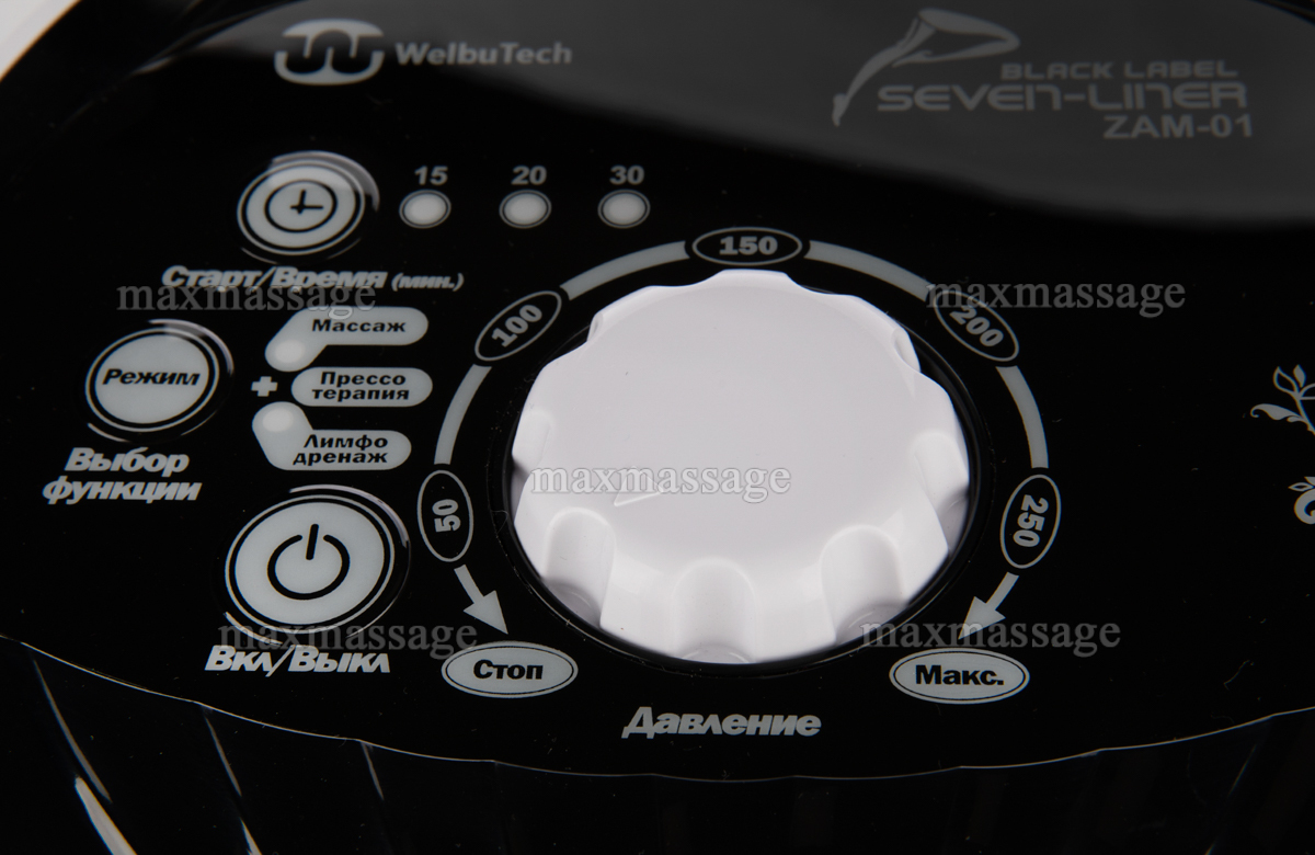 Удобная панель управленияАппарат для прессотерапии WelbuTech Seven-Liner-01 оснащён удобной и интуитивно понятной панелью управления, которая полностью переведена на русский язык. Управление предельно простое: