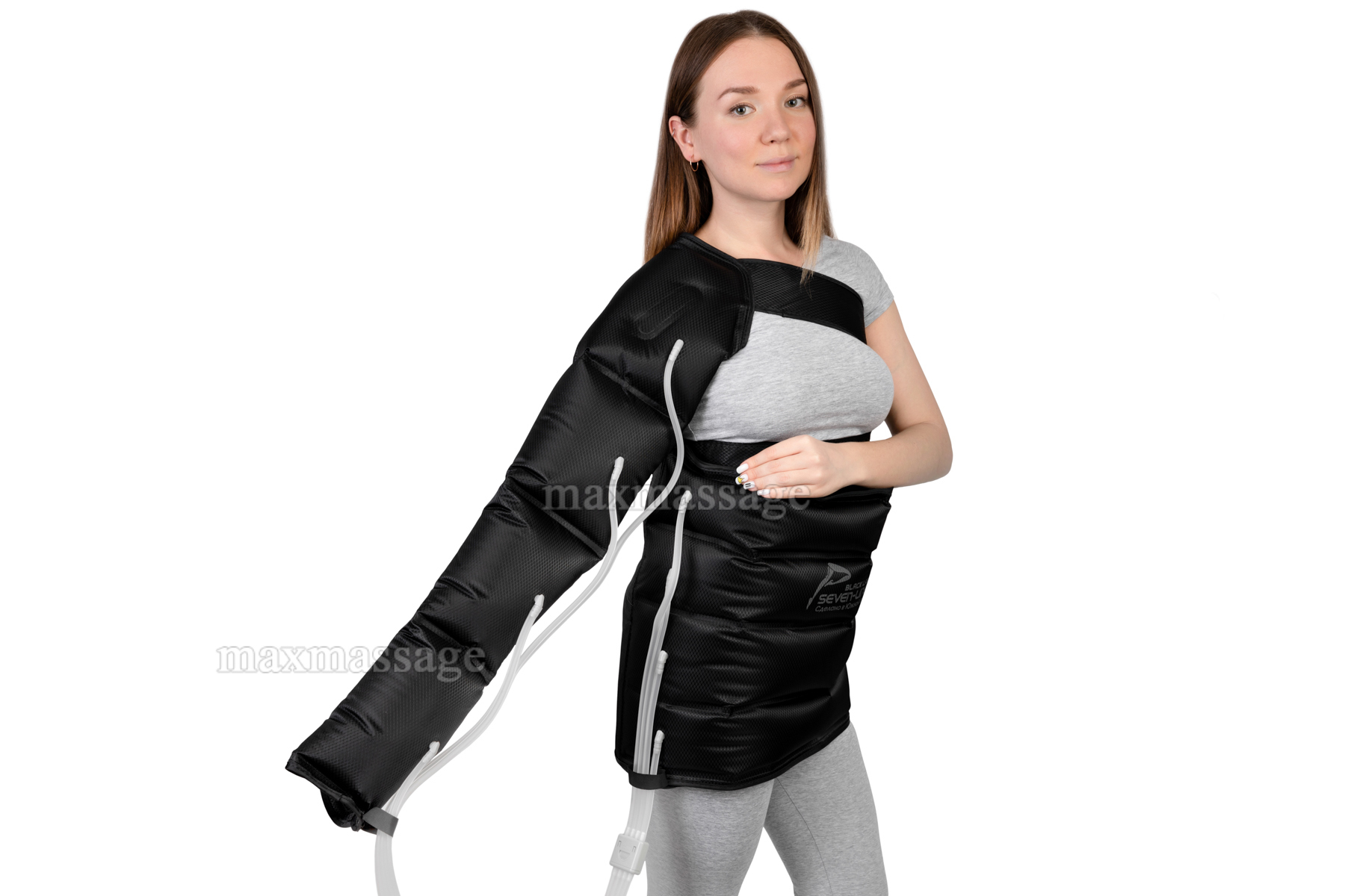 - Комплексный массаж с несколькими манжетами. В полный комплект входят разветвители, которые позволяют одновременно использовать ботфорты, рукав и пояс. Благодаря этому вы можете размять всё тело или насладиться процедурой совместно с другими людьми.