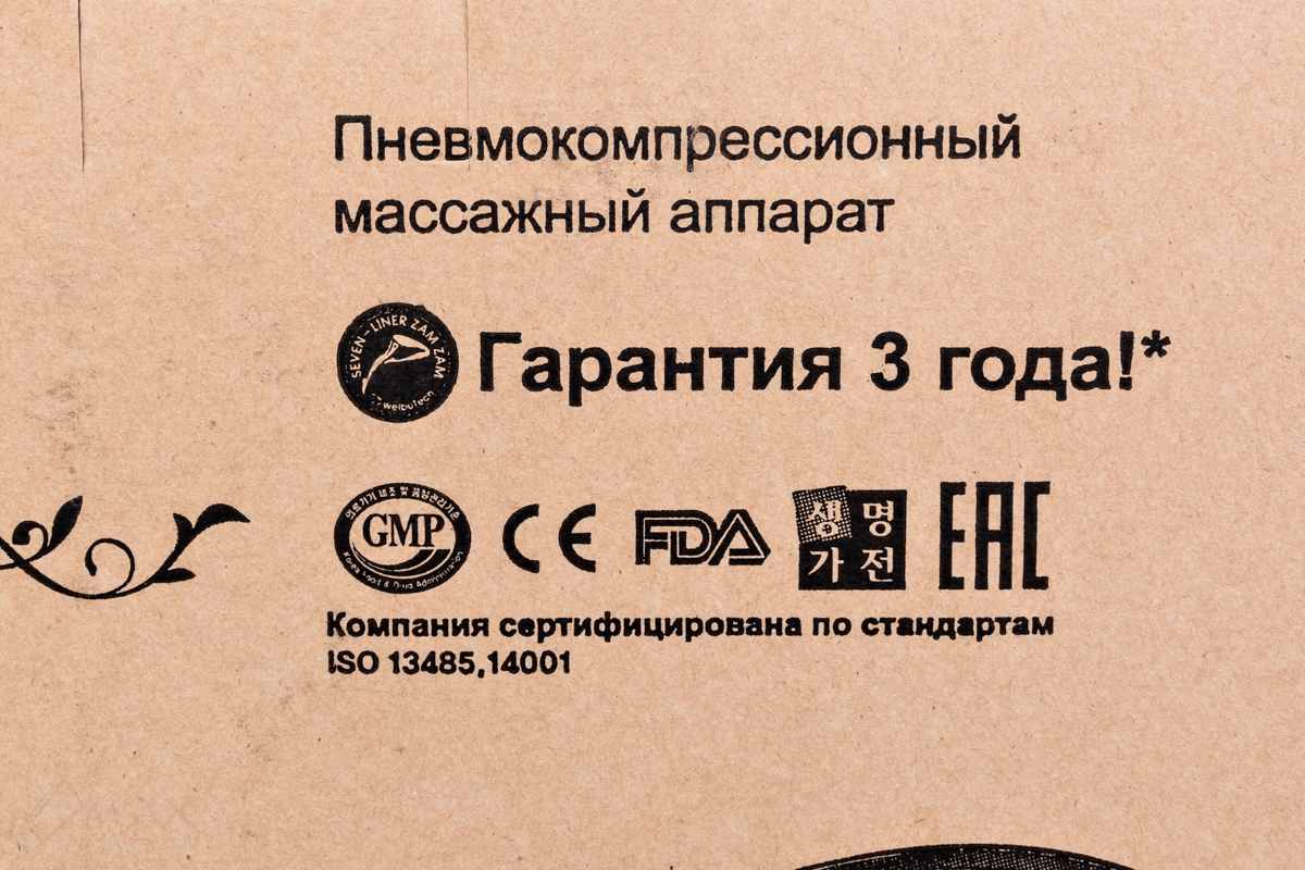 Сертификация EACКомпания WelbuTech – один из лидирующих производителей качественных массажных аппаратов для лимфодренажа и прессотерапии. Техника Велбутек очень популярна в Южной Корее и приобретает всё больше поклонников по всему миру. Массажные аппараты WelbuTech Seven Liner Zam, представленные в нашем интернет-магазине, имеют сертификаты соответствия и полностью безопасны в эксплуатации. Наличие у массажного аппарата сертификата означает, что прибор прошёл все необходимые процедуры оценки и соответствует требованиям технических регламентов. При покупке оборудования для массажа обязательно обращайте внимание на наличие сертификатов. Как правило, их нет у китайских приборов, а значит, вы не застрахованы от быстрой поломки устройства или даже получения травм и вреда для здоровья при эксплуатации. Советуем покупать массажёры с сертификатом: так вы можете быть уверены, что прибор прошёл все необходимые тесты и безопасен для здоровья. |