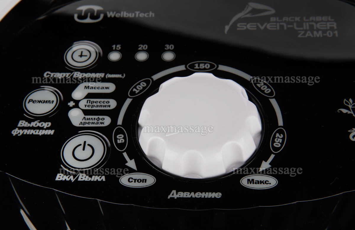 Аппарат для прессотерапии WelbuTech Seven-Liner-01 оснащён удобной и интуитивно понятной панелью управления, которая полностью переведена на русский язык. Управление предельно простое:
