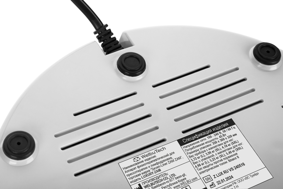 WelbuTech Seven Liner Zam Luxury Аппарат для лимфодренажа, прессотерапии, массажа (максимальный комплект), размер XXL (новый тип стопы), (РУ)
