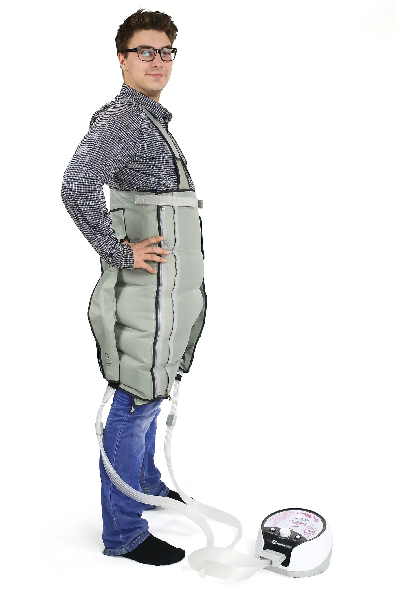 Манжета-шорты умеет универсальный размер, который регулируется с помощью трёхсекционной молнии по бокам. Вы сами выбираете оптимальный обхват для комфортного проведения процедур - минимальный, средний или максимальный. Чтобы определить, подходит ли вам манжета-шорты, измерьте свои параметры - обхват под грудью, талии, ягодиц и бедра. Сверьте результаты измерений с размерной таблицей в соответствующей вкладке. Например, если обхват под грудью не превышает 75 см, талии - 100 см, ягодиц - 115 см, а бедра 60 см, вы сможете проводить процедуры, застегнув манжету на первую молнию. Важно: для корректной работы манжеты-шорт необходимо оставлять запас 4-5 см. Если размер манжеты оказался мал, Вы всегда можете приобрести расширители на 6/12 см. При необходимости допускается использование 2 и более расширителей.