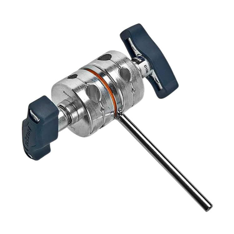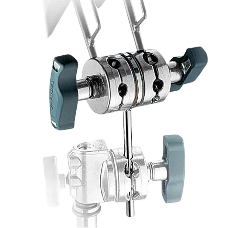 Функциональный зажим с двумя соединенными между собой муфтами. Обе муфты оснащены отверстиями для установки аксессуаров. Представленная конструкция имеет длину 135 мм и штифт диаметром 10 мм |