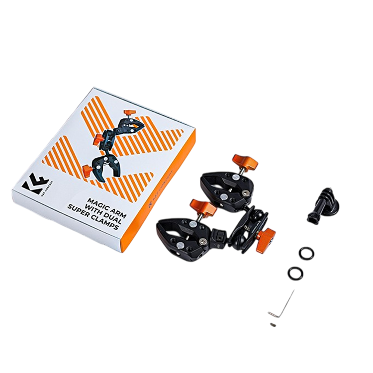 Двойной зажим K&F Concept — идеальный помощник для крепления оборудования в нестандартных условиях. С грузоподъемностью 1.5 кг и раскрытием губок до 60 мм он фиксирует зонты, отражатели или селфи-палки на мотоциклах, велосипедах, перилах и даже штативах. Множество резьбовых отверстий 1/4" на корпусе зажима позволяют дополнить сборку кронштейном и другими аксессуарами, расширяя возможности съемки. Встроенные противоскользящие силиконовые прокладки защищают поверхности от царапин и обеспечивают стабильную фиксацию даже на неровных объектах |