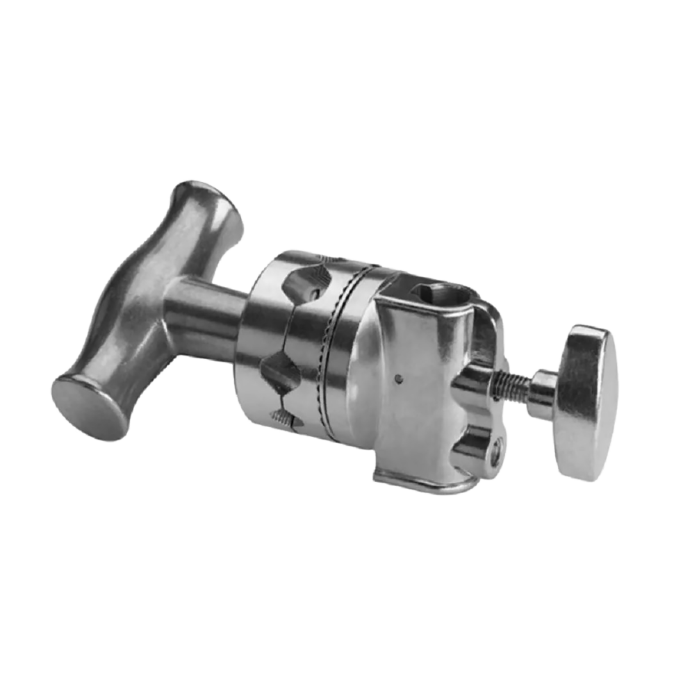 Зажим выполнен из алюминиевого сплава. Характеризуется высокой прочностью и легким весом. Оснащен большой Т-образной ручкой для удобства монтажа |
