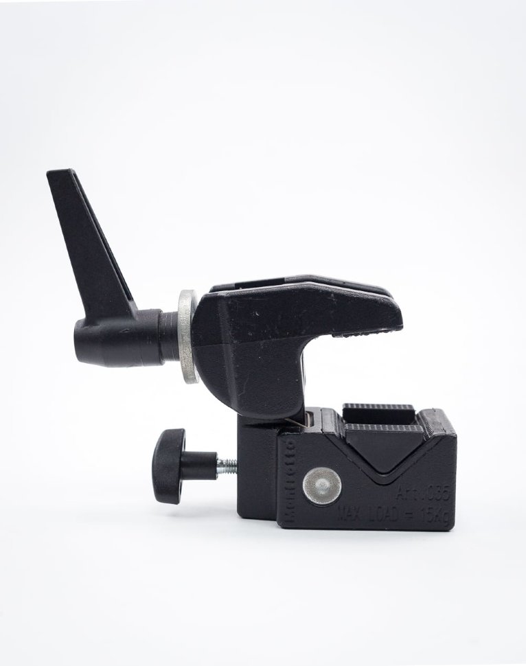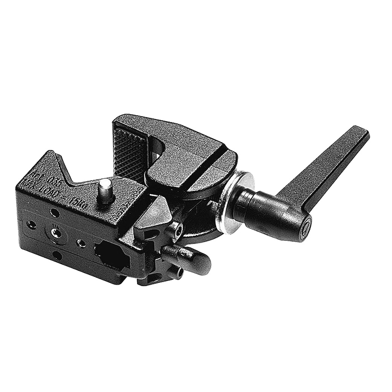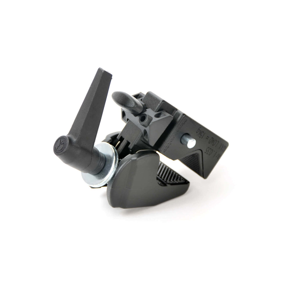 Зажим из нержавеющей стали может быть установлен на плоские поверхности и трубы шириной от 13 до 55 мм. Модель выдерживает нагрузку до 15 кг и имеет блокирующий рычаг для более надёжного крепления. Имеет гнездо для 16 мм втулок и 1/4"  |