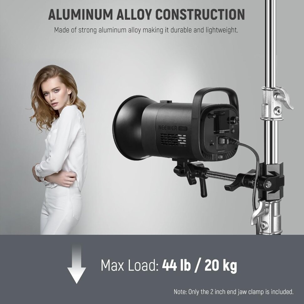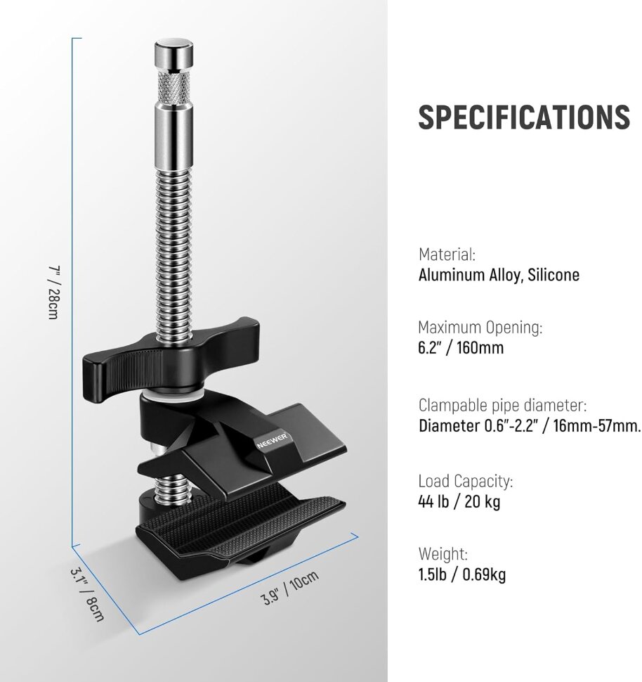Зажим для установки осветителей на стойки, колонны, трубы и элементы окружения. Максимальное открытие 160мм, а благодаря ромбовидной форме подойдет для труб диаметром до 57мм. Конструкция изготовлена из алюминия и стали, благодаря чему способна выдерживать оборудование весом до 20 кг |