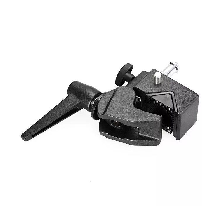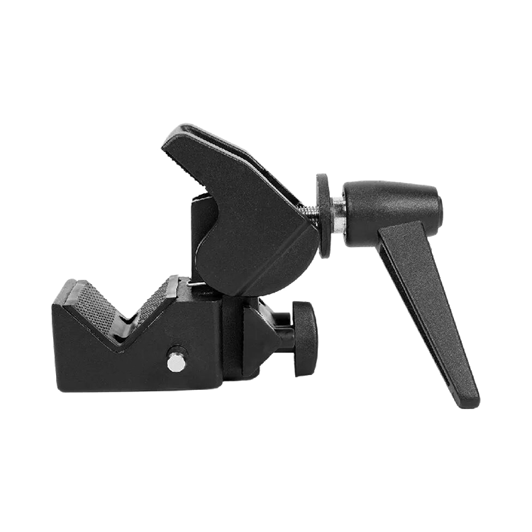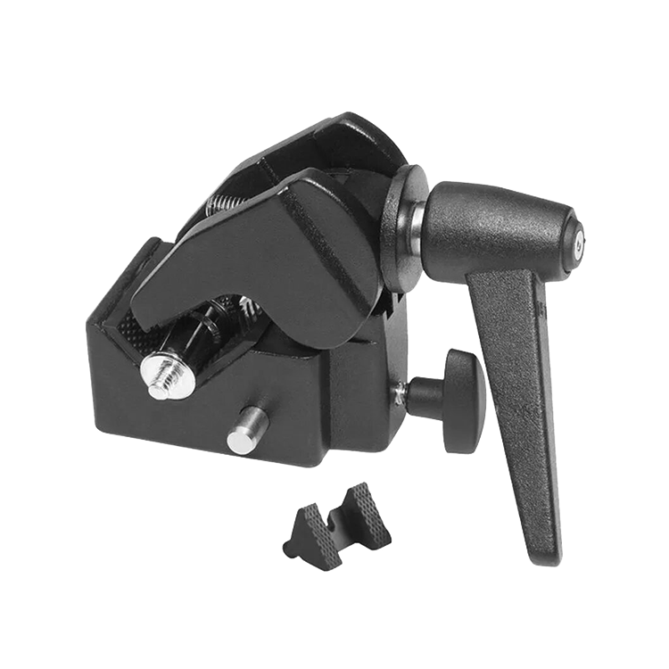 Зажим для установки студийного оборудования на элементы окружения и стойки. Имеет максимальную нагрузку в 15 кг, выполнен из алюминия |