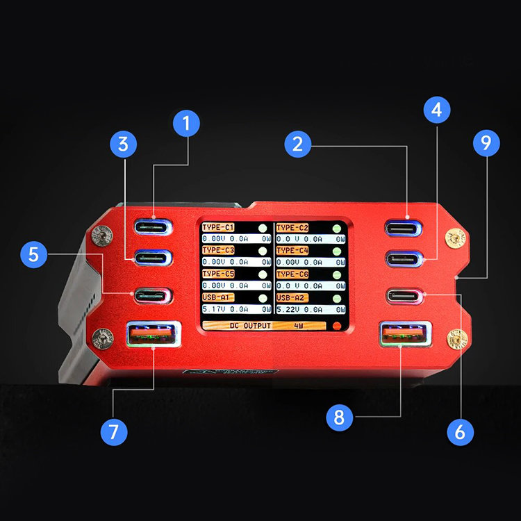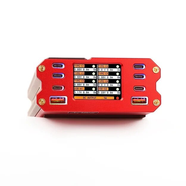 450ВтУльтимативное решение для зарядки целого комплекса различного оборудования! Имеет 6 портов Type-C (до 100 Вт), 2 порта USB (до 18 Вт) и один DC на 450 Вт. Каждый выход контролируется отдельным чипом, правильно распределяющим нагрузку. Для всех цифровых портов предусмотрен собственный индикатор на торце |