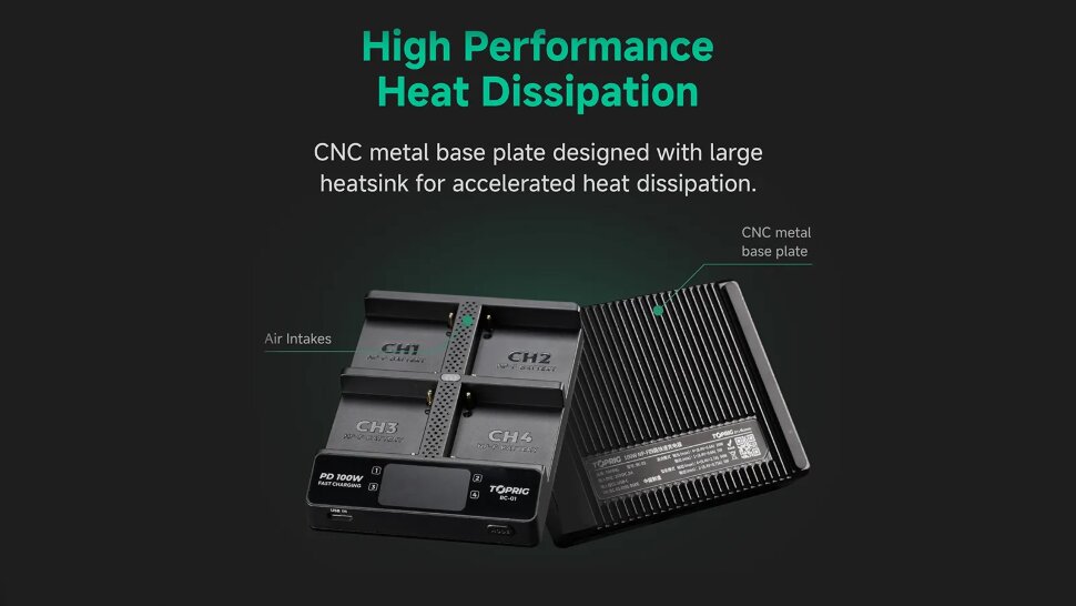 Удобство и надежностьУстройство оснащено интуитивным LCD-дисплеем, который отображает уровень заряда каждого аккумулятора, а также поддерживает функцию активации аккумуляторов с низким напряжением. Благодаря эффективной системе теплоотвода и компактному легкому корпусу, TOPRIG BC-01 обеспечивает высокую производительность и удобство транспортировки. Зарядка через Type-C с поддержкой Power Delivery 100W делает устройство универсальным и совместимым с современными источниками питания |