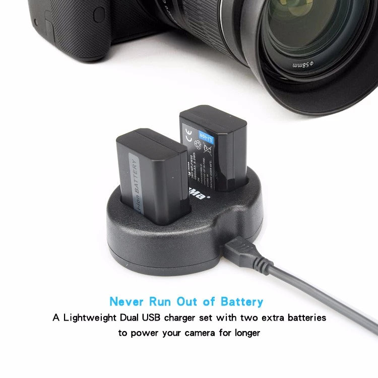 Двойное зарядное устройство для аккумуляторов типа Sony NP-FW50. Модель имеет подключение посредством micro USB кабеля, что позволяет заряжать батареи от стандартного сетевого адаптера, автозарядки или даже Power Bank. BM015 имеет компактные размеры и весит всего 80 г |