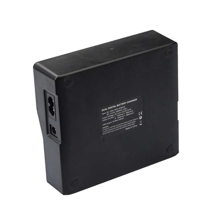 Двойное зарядное устройство для аккумуляторов NP-F, что применяются для питания съёмочного оборудования. Модель имеет дисплей, на котором можно увидеть режим работы и уровень заряда подключенных батарей. Может работать как c переменным, так и постоянным током, а также имеет в комплекте адаптер для автомобильного прикуривателя |