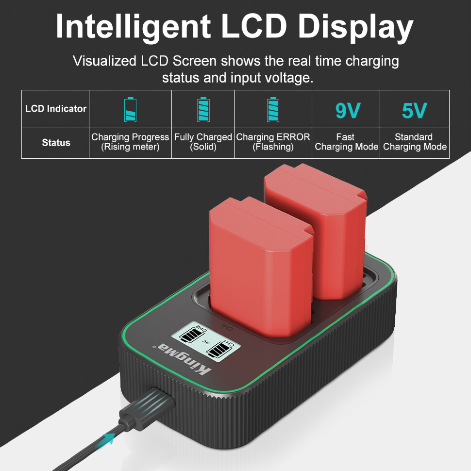 Зарядное устройство Kingma PD3.0 Dual Battery Charger для NP-FZ100