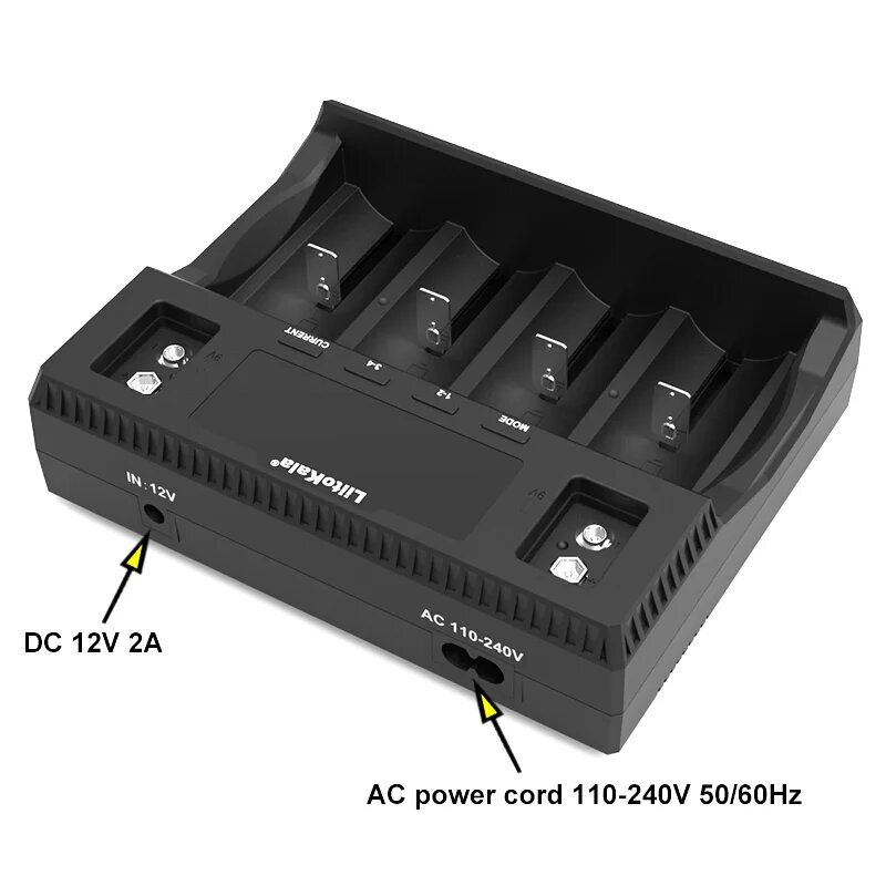 Lii-D4XL оснащено портом для зарядки аккумуляторов 9 В, расположенным по бокам экрана, который позволяет заряжать две батареи одновременно с током около 85 мА на каждую. Светодиоды показывают состояние зарядки: красный свет – зарядка, зеленый – полная зарядка или режим ожидания. Устройство автоматически распознает тип аккумулятора и включает функции защиты от перезарядки, переразряда, короткого замыкания и обратного подключения, а также функцию активации напряжения 0 В для восстановления разряженных батарей |
