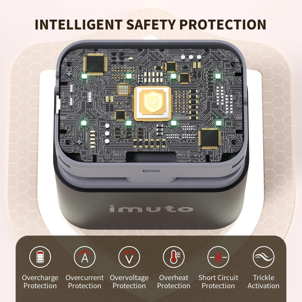 Интеллектуальная зарядная экосистемаЗарядный кейс Imuto оснащен восемью независимыми слотами с микропроцессорным управлением, для одновременного пополнения энергозапаса нескольких батарей. Совместимость с питанием через Type-C 5В/3А позволяет использовать Power bank, автомобильные зарядные устройства и сетевые адаптеры. Модель поддерживает два вида аккумуляторов, самостоятельно определяя их и обозначая цветом: