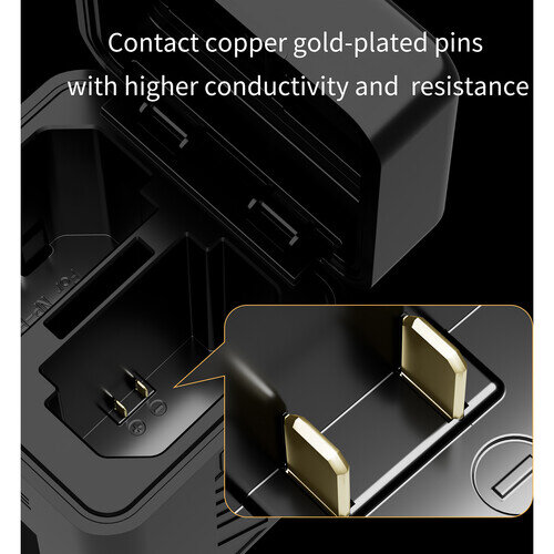 Зарядный кейс разработан специально для аккумуляторов LP-E17 камер Canon. С его помощью вы сможете подзаряжать батареи и безопасно хранить элементы питания в одном месте. Для большего удобства спереди расположен OLED дисплей демонстрирующий уровень заряда |