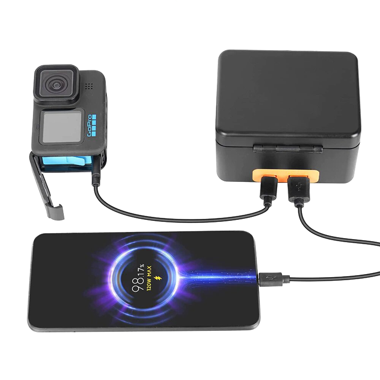 Зарядный кейс со встроенным аккумулятором имеет три слота для зарядки аккумуляторов к экшн камере GoPro Hero 5/6/7/8/9/10. С его помощью вы сможете пополнить энергозапас экшнкамеры в дороге, а также использовать как внешний аккумулятор |